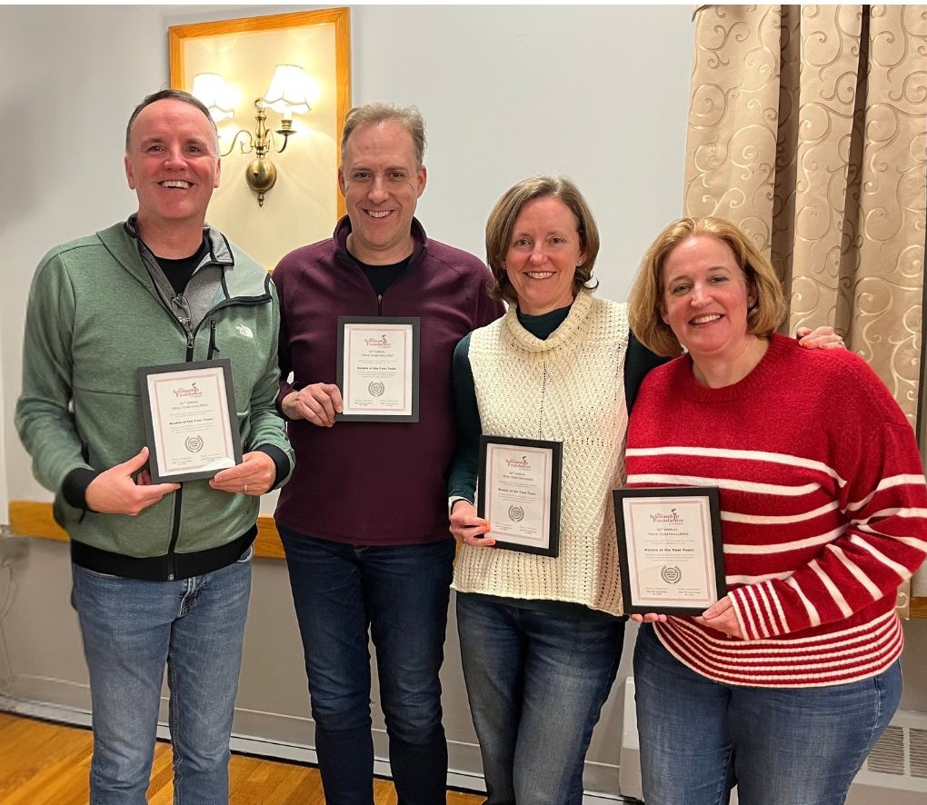 Finishing in first place was the team of Pug Moms Strong, consisting of the O’Leary’s Jack, Mark, Sarah and Timothy. Last year’s rookie team, The 4 Leaf Clovers, took home second place consisting of Sheila Eriksen, Barbara Cassidy, Frank Cassidy, and Tim Sweeney. Third place, went to the seasoned team Eponymous, consisting of Lucy Skeldon, Lauren Crews, Dan Crews, and Alex Skeldon. Rookie of the Year honors went to Just Like Matt Murphy’s consisting of Lauren and Steve Tulloch, and Carrie and Greg Flynn.
